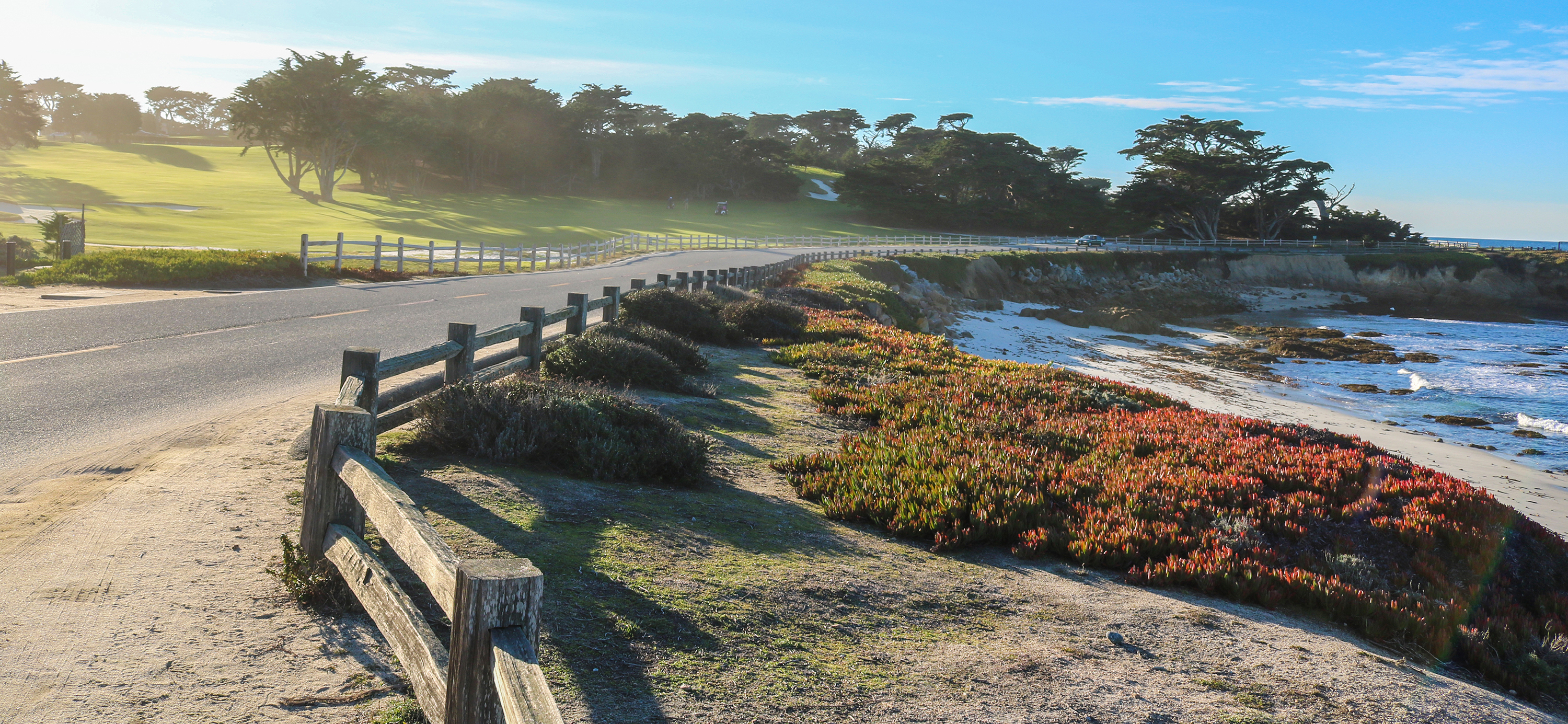 Pebble Beach is an unincorporated community on the Monterey Peninsula in Monterey County, California. In addition to lying at sea level and being a small coastal residential community of mostly single-family homes, Pebble Beach is a resort destination and home to the famous golf courses of Cypress Point Club, Monterey Peninsula Country Club, and Pebble Beach Golf Links.